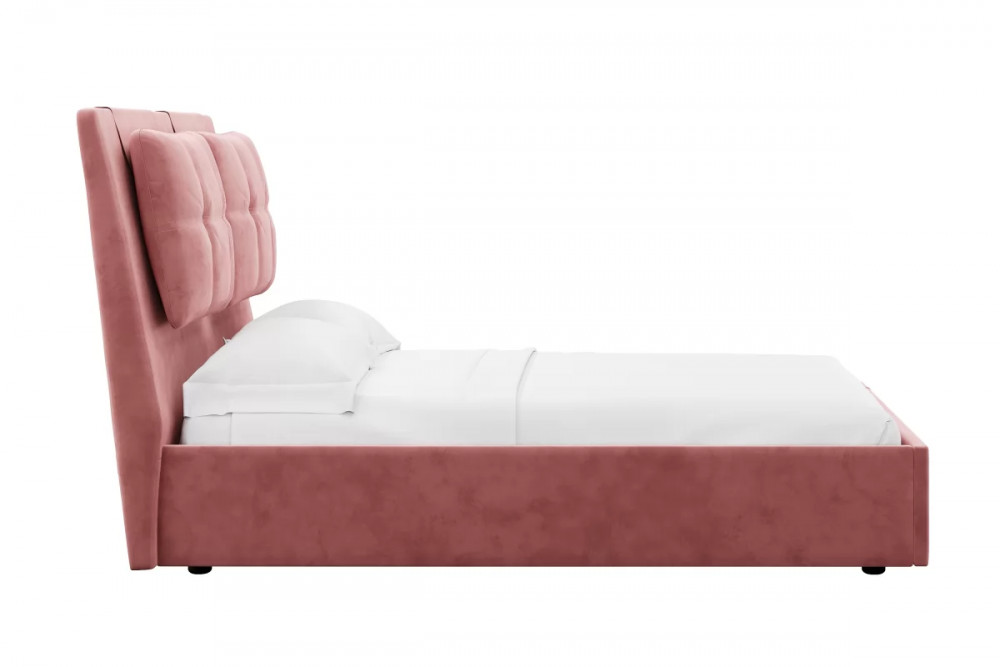 Кровати выполнены в нейтральных и в ярких тканях велюр, что позволяет подобрать подходящий вариант почти под любой интерьер. В качестве декора применяются декоративные подушки на изголовье.