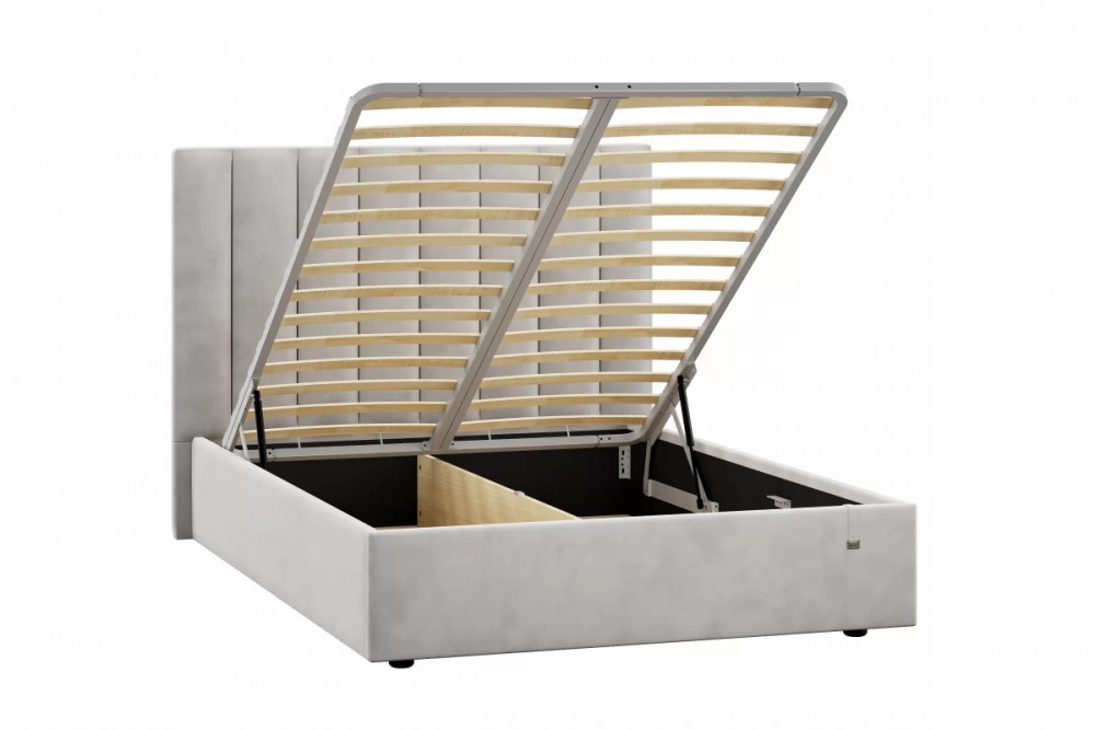 Подъемный механизм легок в управлении, а вместительный короб внутри кровати подойдет для хранения подушек, белья и других вещей. Мягкие тканевые ручки облегчают процесс подъема основания.