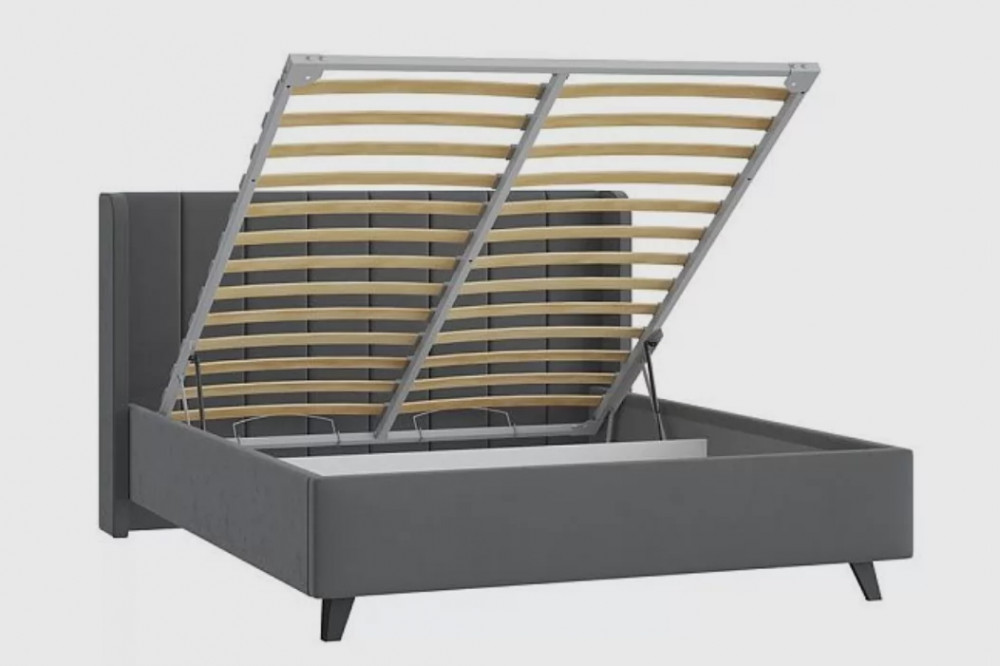 Кровать комплектуется ортопедическим основанием "Профи" с подъёмным механизмом и бельевым ящиком.