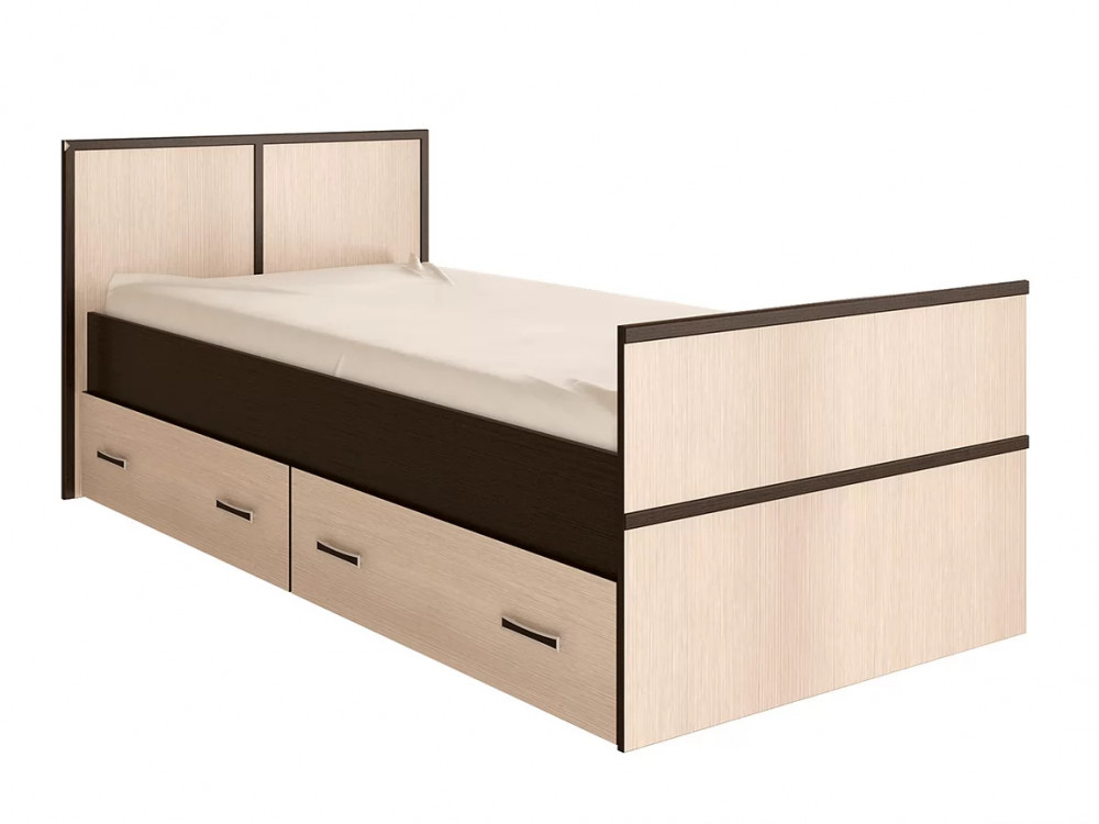 Односпальная кровать Сакура выполнена из ЛДСП высокого качества в контрастных цветах венге и лоредо.