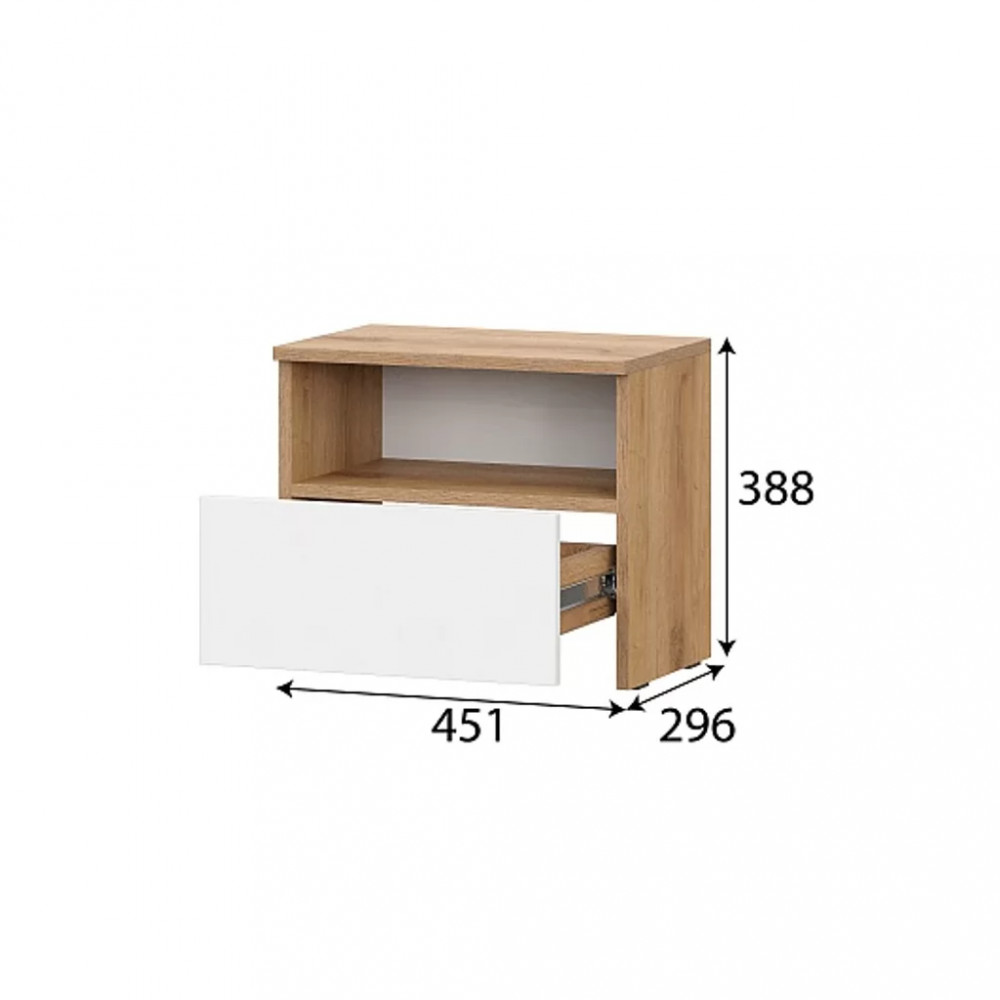 Максимальная нагрузка на крышку - 10кг. Максимальная нагрузка на ящик - 5кг.Тумба прикроватнаяШирина изделия, мм: 451Высота изделия, мм: 388Глубина изделия, мм: 296Цвет фасада: Белый