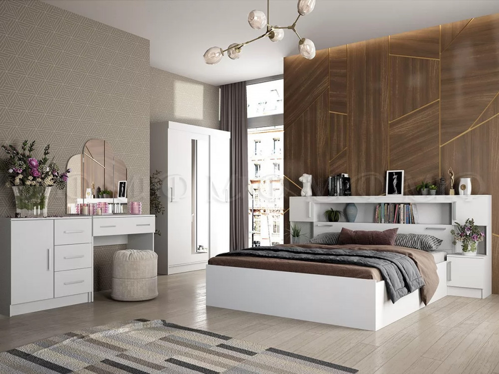 Спальный гарнитур «Глосс» №6 Яблоня Беллуно/Cтекло Графит матовый