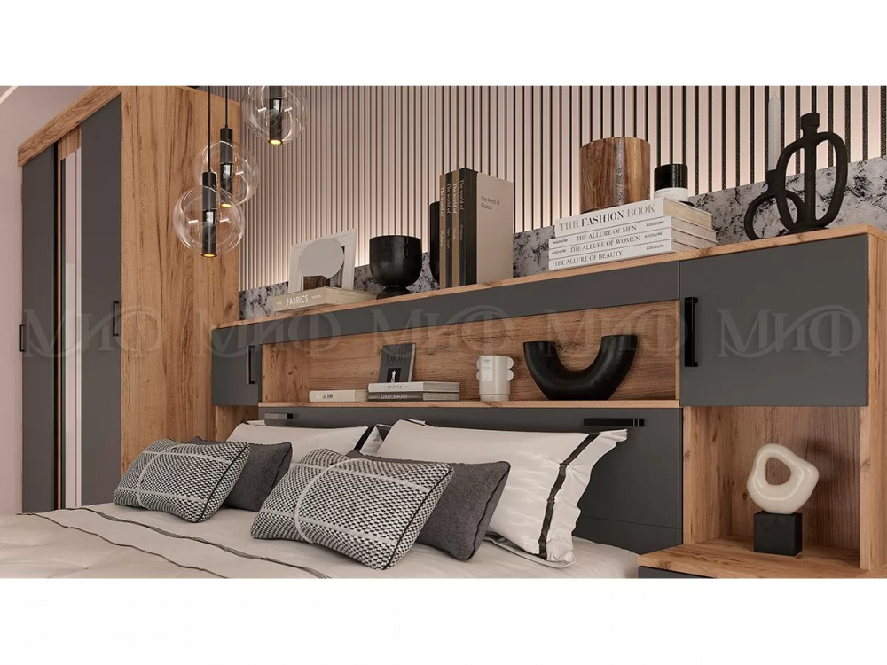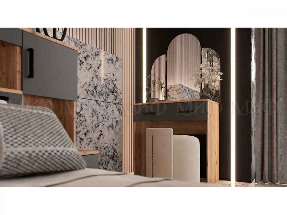 Спальный гарнитур «Порто» стандартный Яблоня Беллуно, Графит софт, Велюр Графит