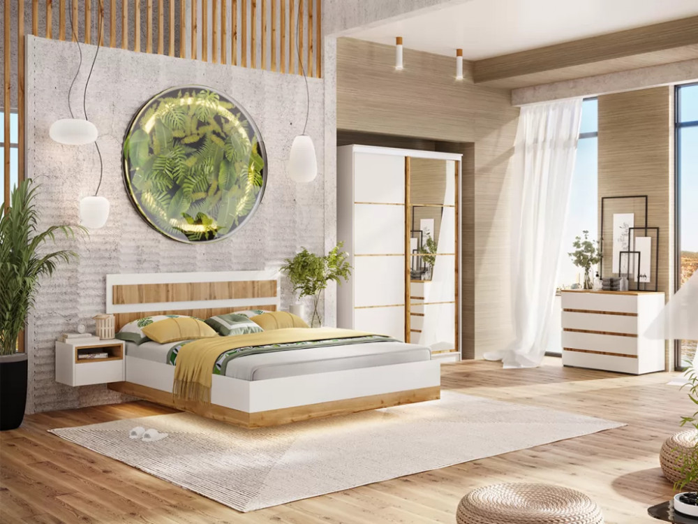 Спальный гарнитур Дубай Белый жемчуг/Дуб Вотан в Ишиме
