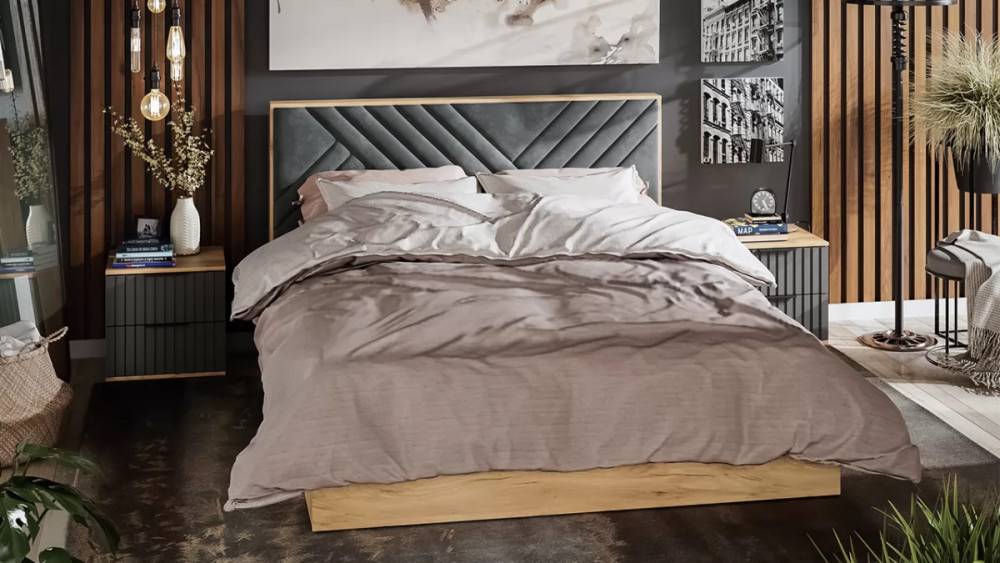 Спальный гарнитур «Хилтон» стандартный Дуб Крафт золотой, Графит матовый