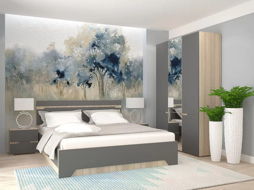 Спальный гарнитур с 3-х створчатым шкафом Анталия Сонома-Графит софт в Ишиме