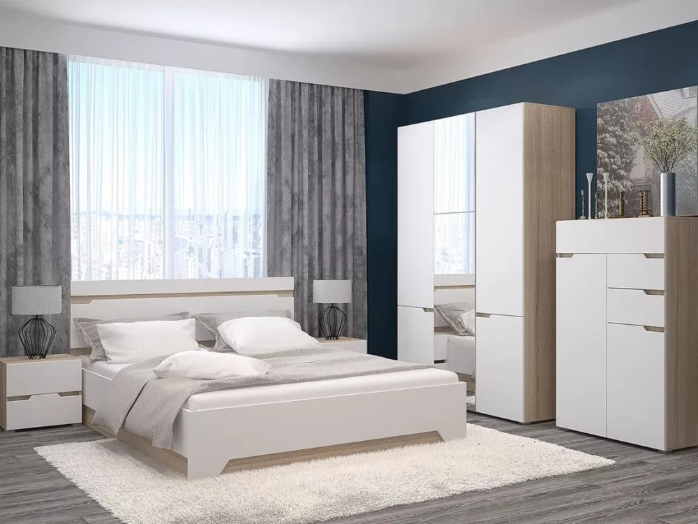 Спальный гарнитур с 3-х створчатым шкафом и комодом Анталия Сонома-Белый софт в Ишиме