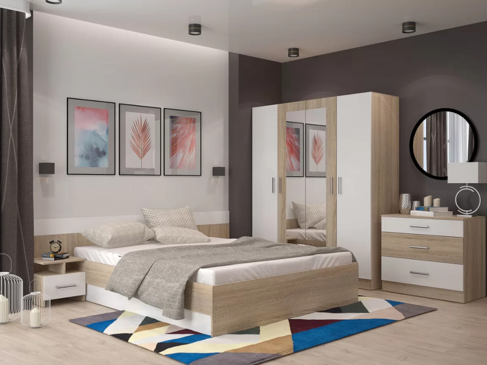 Спальня Леси Сонома-Белый с четырехстворчатым шкафом в Ишиме