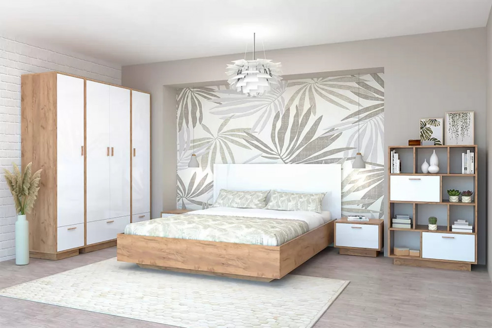 Спальня Эго, набор №БГ-1, дуб крафт золотой/белый глянец Диал в Ишиме