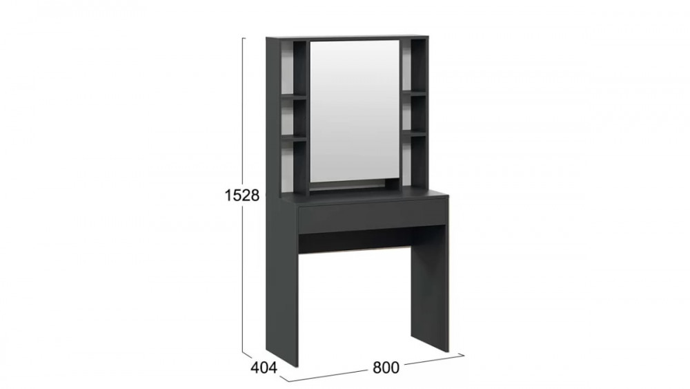 Назначение: Мебель для работы и приема пищи Отсек для хранения: Да Количество дверей: 1 Зеркало: Да Гарантийный срок: 24 месяца Комната использования: Спальня Материал кромки каркаса: ПВХ Стиль: Современный Тип: Туалетный столик с зеркалом Расположение: Напольный Тип направляющих ящиков: Шариковые Материал каркаса: ЛДСП Дополнительная информация: Размер двери с зеркалом 680х474 мм. Производство: Россия Габаритная ширина: 800 Габаритная высота: 1 528 Форма предмета: Прямоугольный Габаритная глубина: 404 Количество ящиков: 1 Количество полок ЛДСП: 6 Модель: Салли Срок службы: 5 лет Материал фасада: ЛДСП Оттенок: Темно-серый Цвет: Антрацит Цвет каркаса: Антрацит Цвет фасада: Антрацит Оттенок каркаса: Темно-серый Оттенок фасада: Темно-серый Тип сборки: Не универсальный Наличие механизма раскладки: Нет Наличие спального места: Нет