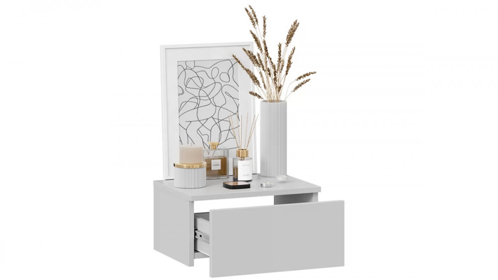 Назначение: Мебель для хранения Гарантийный срок: 24 месяца Комната использования: Спальня, Молодежная, Прихожая Материал кромки каркаса: ПВХ Стиль: Современный Тип: Тумба Расположение: Настенный Тип направляющих ящиков: Шариковые Материал каркаса: ЛДСП Дополнительная информация: Ящик открывается методом захвата рукой. Производство: Россия Габаритная ширина: 400 Габаритная высота: 200 Форма предмета: Прямоугольный Габаритная глубина: 290 Количество ящиков: 1 Срок службы: 5 лет Материал фасада: ЛДСП Оттенок: Белый Цвет: Белый Ясень Цвет каркаса: Белый Ясень Цвет фасада: Белый Ясень Оттенок каркаса: Белый Оттенок фасада: Белый Наличие механизма раскладки: Нет Наличие спального места: Нет